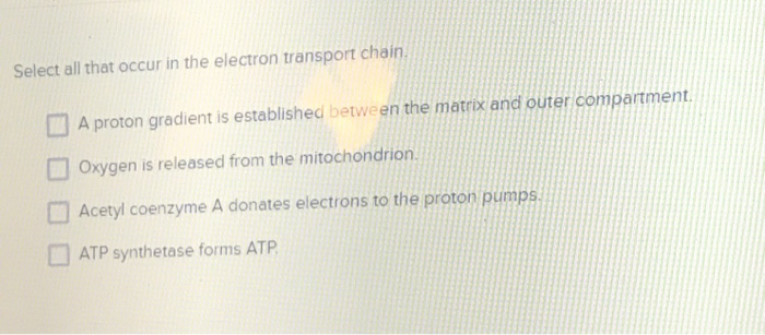 Solved Select All That Occur In The Electron Transport Chegg Com